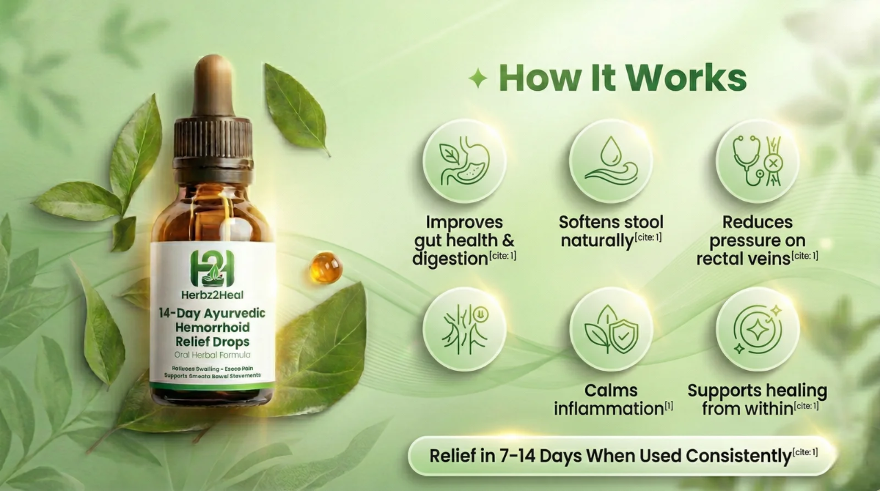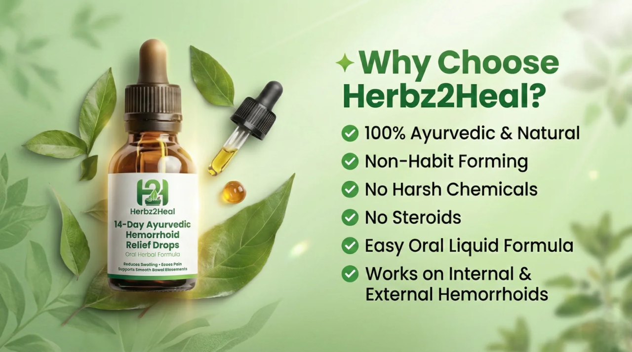 Find fast, natural relief with Herbz2Heal 14-Day Ayurvedic Hemorrhoid Relief Drops, a powerful oral herbal formula designed to target the root cause of hemorrhoids from within.